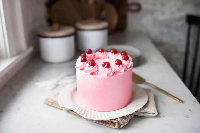 Hello February! With Valentine’s Day just around the corner, I can’t think of a better occasion then this to bake up a perfectly *pretty in pink* cake. The color is so vibrant & fun!