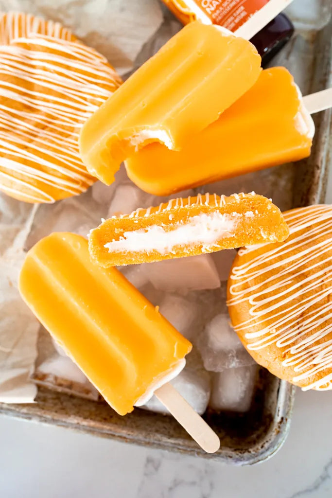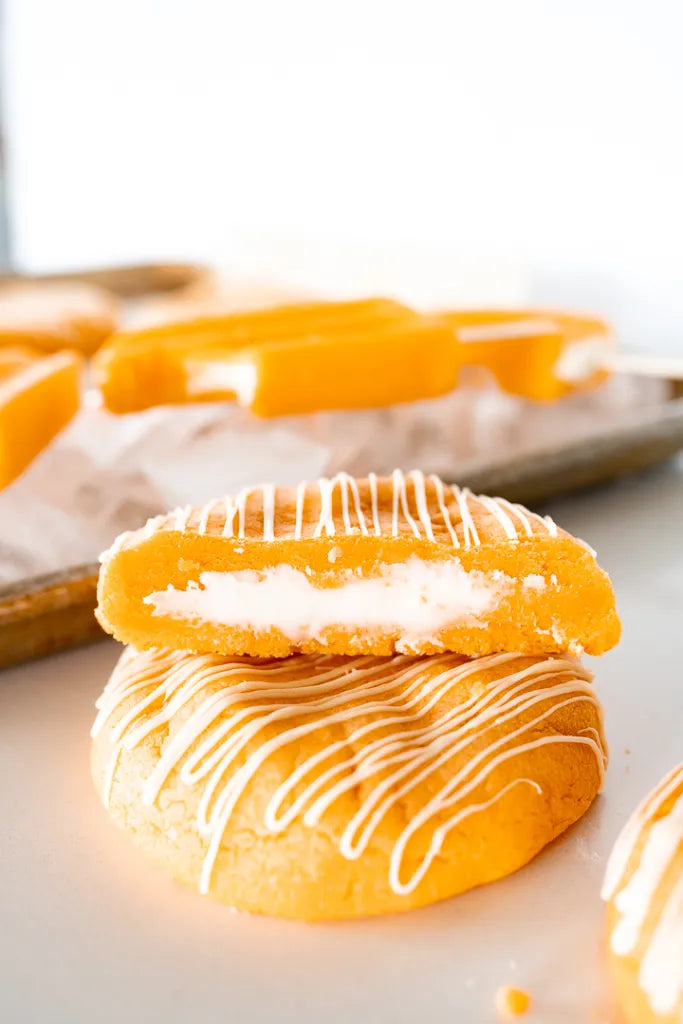 • Make and freeze your frosting ahead of time. This will make your life a little easier when it comes to making your cookies. It is important to use frozen frosting in the middle of the cookie so the frosting doesn’t melt out of the cookie while baking.