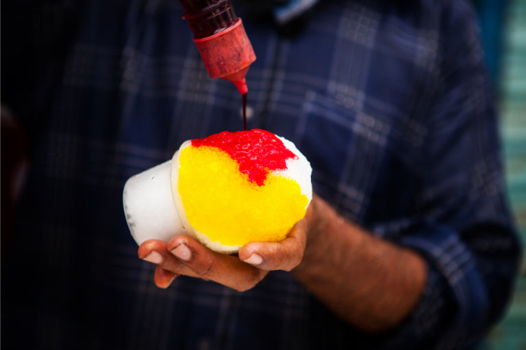 Snow cones- For a single serving, top packed snow with 3 Tbsp. of flavored syrup. For an extra sour kick, fill small spray bottle with 1/2 cup of flavored syrup and 1 extra Tbsp. of Tart & Sour. Mist over snow cone before serving. If you are in your home kitchen, you can easily make your own snow by throwing some ice cubes in your blender.