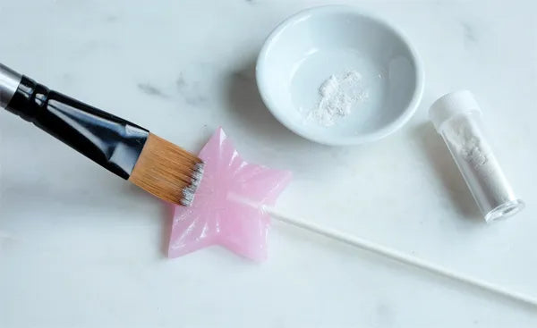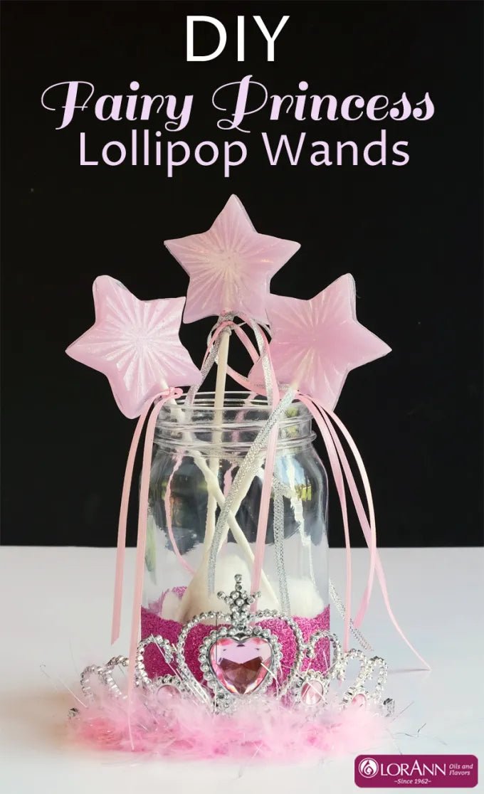We chose strawberry flavor and pink coloring for our lollipop wands, but other flavors and colors would work just as well. We also used the large size lollipop sticks, which make for a longer wand-like handle.