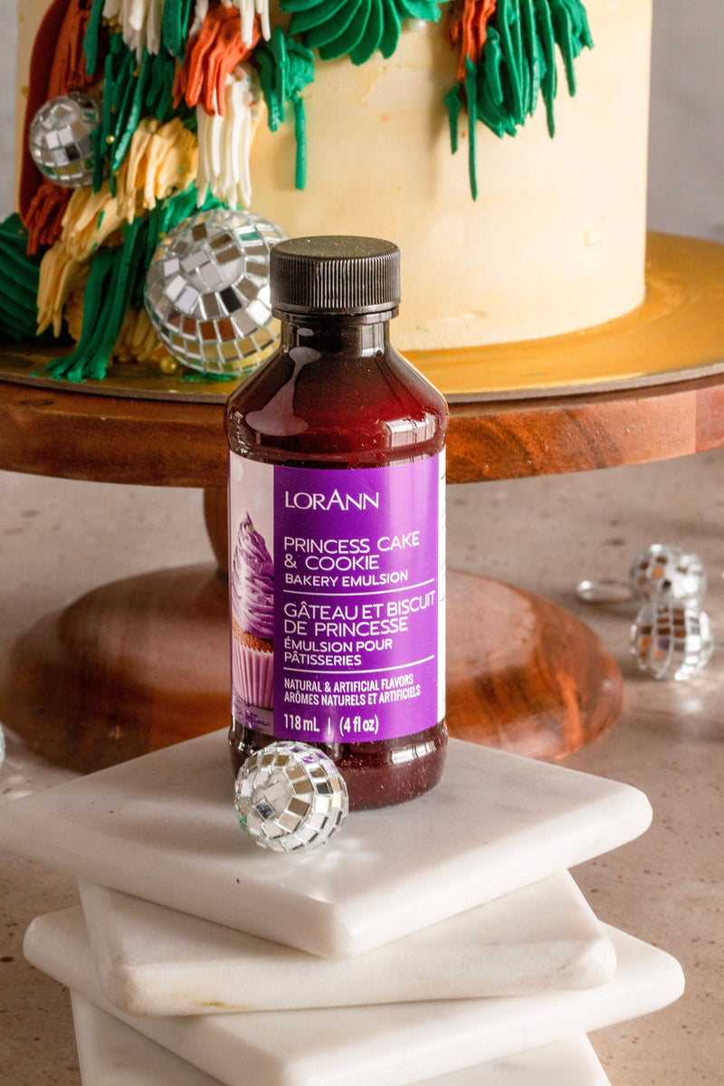 The buttercream frosting featured in this cake was flavored with our Princess Cake & Cookie Bakery Emulsion. You can use any of our bakery emulsions to flavor your frostings, glazes, icings, baked goods and more. Our Bakery Emulsions are water-based flavors that won’t bake out like traditional alcohol-based extracts. That means you don’t have to add extra to get the flavor you crave. We offer over 20 gluten-free, nut-free, low-carb flavors, including Almond! Add to your favorite recipes the same as you would an extract. For information on usage, view our Bakery Emulsions Suggested Usage Guide.