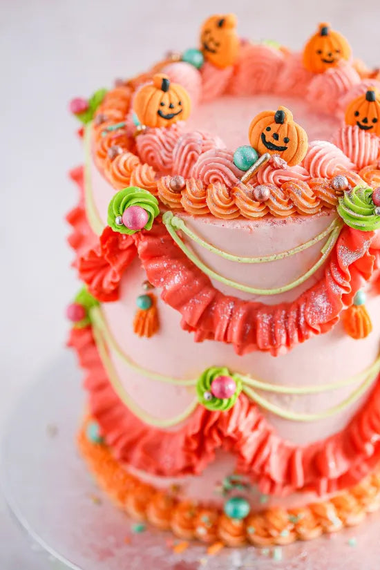 Lambeth style cake is the method of “over-piping” a cake with intricate designs of piped details, scrolls and garlands, over top one another in rows to give impressive depth and layering to the cake. The Lambeth cake was a popular cake technique in Europe in the 19th century. Today, this cake design is buzzing and professional cake designers have seen a surge of Lambeth cake orders due to the rise in Victorian TV shows like Bridgerton, The Great British Bake-Off, and The Crown.