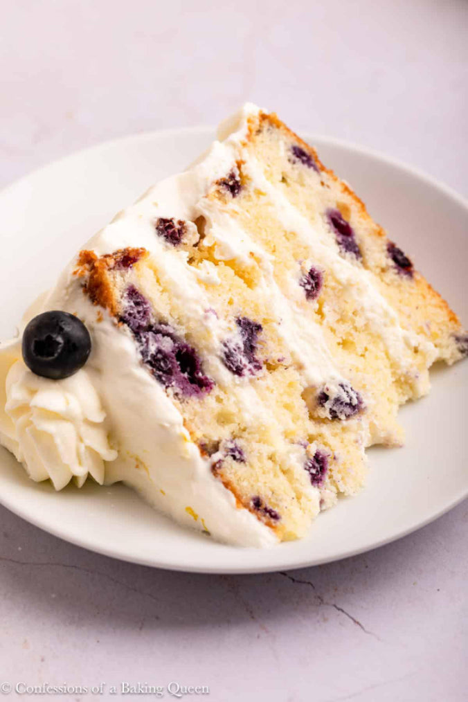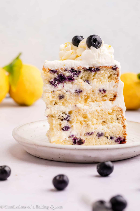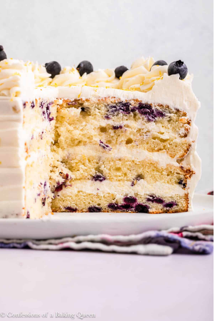 This lemon blueberry cake is a moist layer cake filled with a whipped cream cream cheese frosting. A perfect cake for birthday parties or Mother’s Day! Here you will find an easy recipe that shows you how to make a lemon blueberry layer cake from scratch.