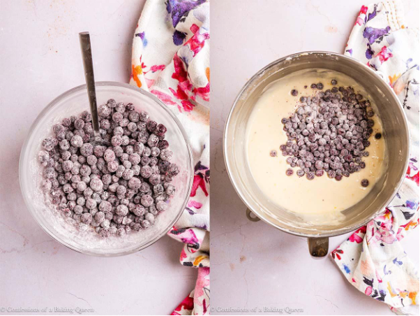 - Flour. You can use a bit of cake flour or all-purpose flour to coat the blueberries to help prevent them from sinking.