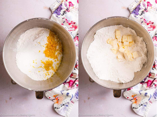- Lemon Zest. We will add the zest to the dry ingredients so it has time to rub up against the sugar to help release all of the natural lemon oils.