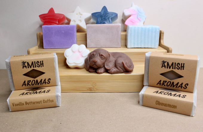 Soap making quickly became another great way to relax, but a trip to Weaver Nut Company in Ephrata, Pennsylvania opened another door. Spotting a display of LorAnn flavors, Matthew asked the manager if they could be used for scenting his homemade soap. The store manager, Andrea, happily assisted Matthew, and found the answer he was looking for. Matthew left Weaver’s with 2 drams of watermelon flavor and went to work. As a thank you, Matthew returned to the store and shared a bar of his latest creation. The managers were so impressed with the watermelon-scented soap; they proposed the idea of selling it in their store. Turning his hobby into a business is something Matthew never considered, but several meetings about scents, packaging, and presentation later, Amish Aromas was born.