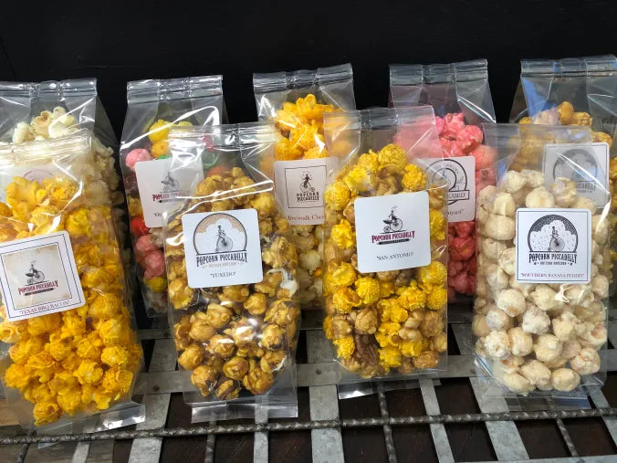 In October of 2017, Theo and Tammy opened Popcorn Piccadilly in Selma, Texas, turning their world-wide adventures into a steampunk wonderland of flavors, aromas, and old-timey treats. Inspired by the hustle and bustle of London’s Piccadilly Circus, the shop-owners and staff are often decked out in Victorian era costumes, goggles, whimsical gadgets, and accessories.