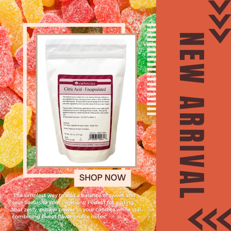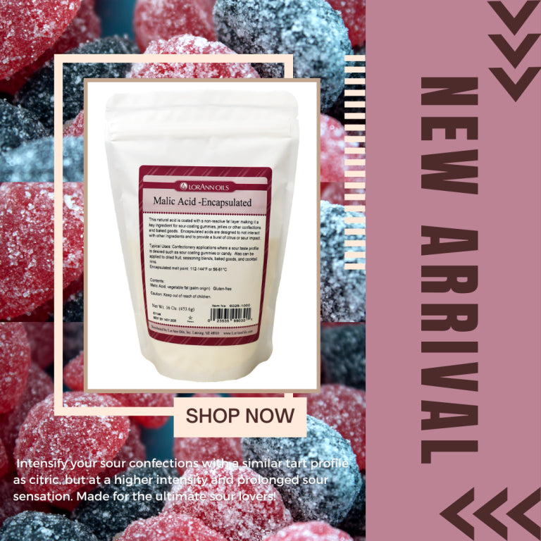 Fun fact: Besides baking and candy making, both encapsulated acids can also be used for coating meats like summer sausage, to help give the meats “tangy” flavors.